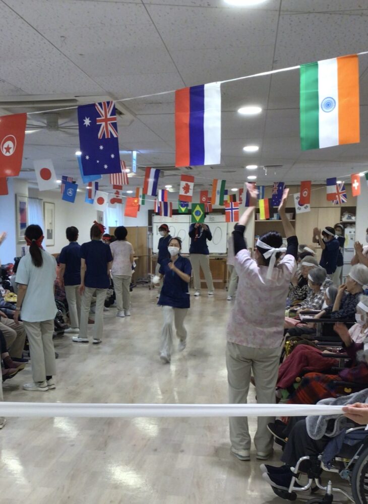 白金・看護師の本田です。 先日ホームの運動会を行いました。 初めて参加するスタッフもおり、どんな競技をするのかとドキドキしておりましたが、 ご入居者様とスタッフが紅白に分かれ、ハチマキをすると一気に運動会の雰囲気になり、ワクワクとしてきました。 個性ある選手宣誓の後、玉入れやペーパー引きなどの各種競技を行い普段とは違うご入居者様の姿に感動するばかりでした。 今年は紅組の勝利となりましたが、すでに来年の運動会が楽しみとなりました。
